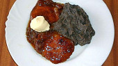 Krok 1: Z černého piva, medu, čili a česneku připravíme marinádu, do které na pár hodin naložíme plátky masa. V kastrole rozpustíme sádlo, přidáme cibuli, krátce osmahneme.