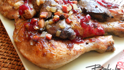 Kuřecí čtvrtky s játry a brusinkami