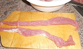 Krok 1: Vepřovou kýtu mírně naklepeme a nakrájíme na delší proužky.