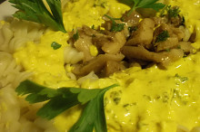 Domů - Recepty - Těstoviny s domácí kari - sýrovou omáčkou a hlívou ústřičnou