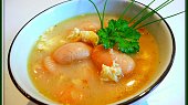 Krok 6: Na pánvi na trošce oleje umícháme vajíčka do doby, než se srazí a vsypeme je do polévky. Polévku dosolíme a dopepříme podle vlastní chuti.