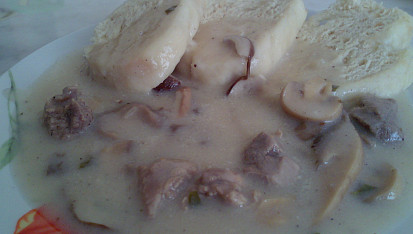 zampiony na smetane omacka s knedlou,