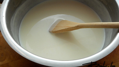 Krok 3: Želatinu dáme do trochy vody nabobtnat, vymačkáme a rozpustíme ve vlažném mandlovém mléce s cukrem. Vše důkladně promícháme a necháme vychladnout.
