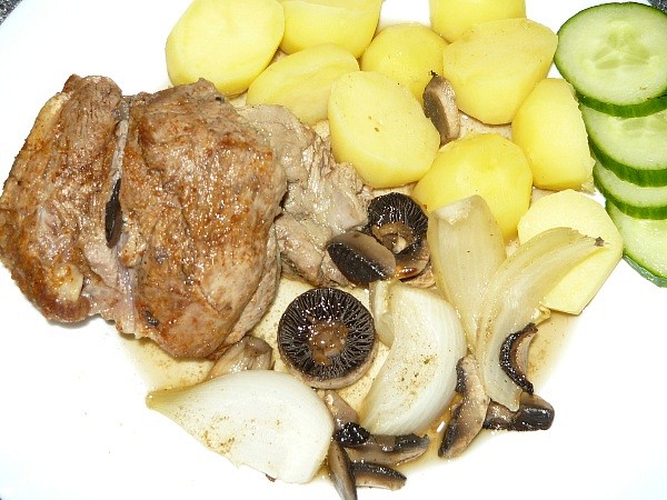 jehněčí kýta na houbách,