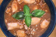 Olihně s rukolou, rajčatovou salsou a špenátovými brambory