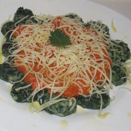 Kopřivy a špenát povaříme, nasekáme a smícháme s ricottou, vejci, moukou a sýrem. Ze vzniklého těsta vytvoříme noky. Ty uvaříme a podáváme s omáčkou z pečených paprik, které rozmixujeme s česnekem a jarní cibulkou dohladka.