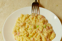Sýrová omáčka se šunkou a kukuřicí
