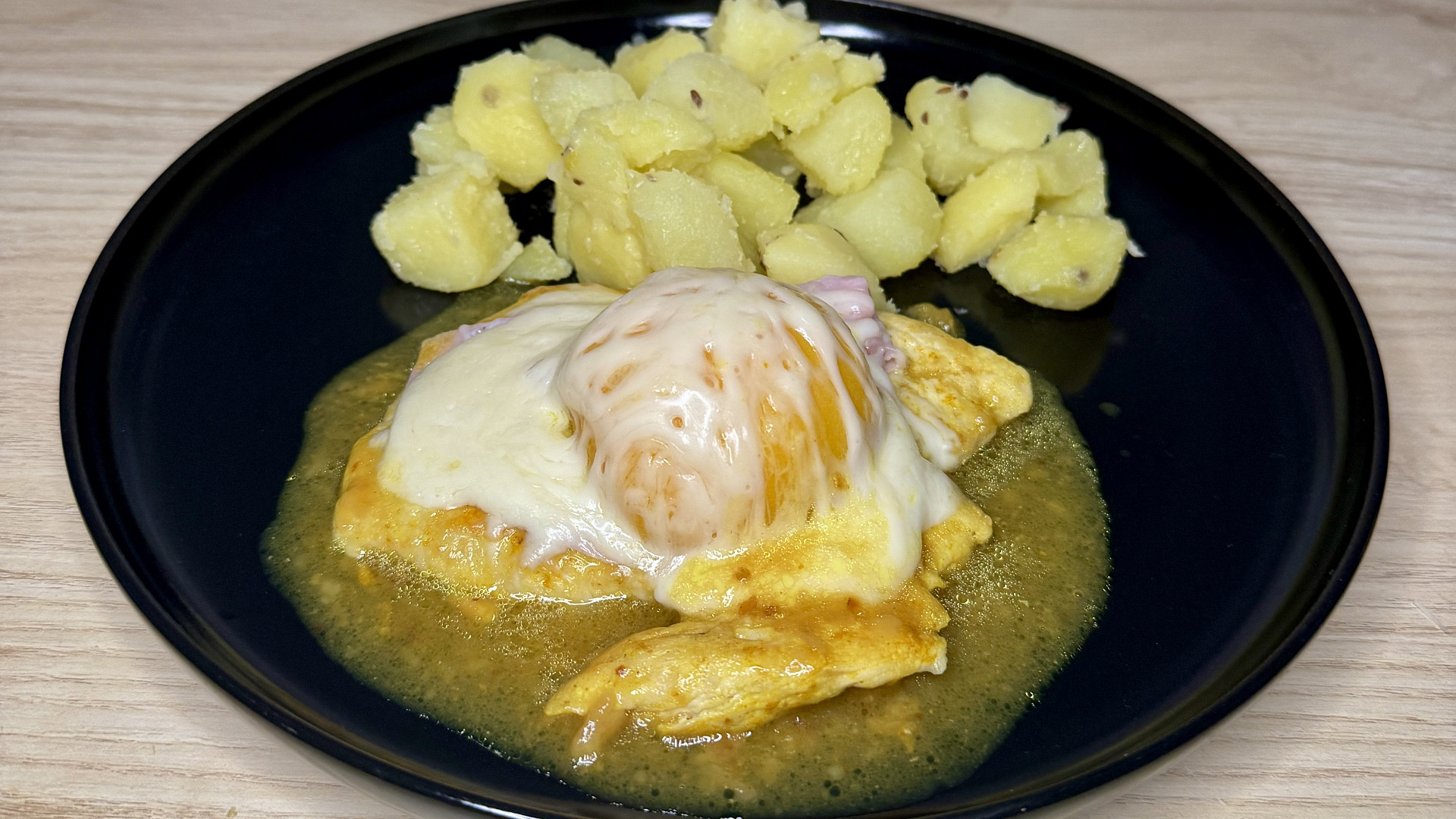 Domů - Recepty - Kuřecí plátek se šunkou, broskví a sýrem