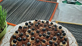 Krok 6: Korpus vrátíme do formy, naneseme na něj krém a rozetřeme. Uložíme nejméně na 3 hodiny do lednice, raději do druhého dne. Do dvou misek rozdělíme smetanu, do jedné přidáme 3-4 lžičky kakaa, vyšleháme a ozdobíme jí dort.