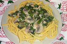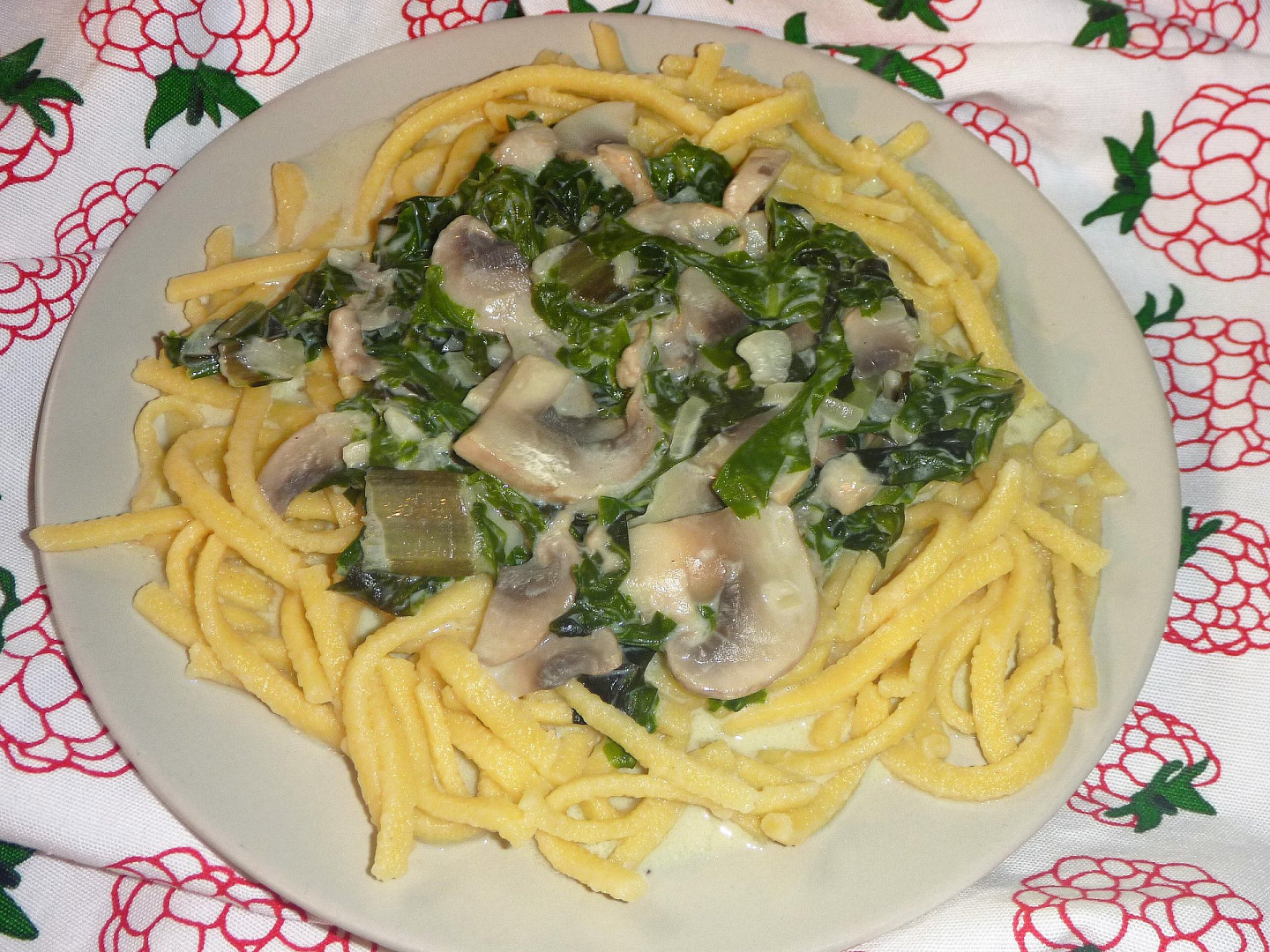 Domů - Recepty - Těstoviny s mangoldem a žampiony