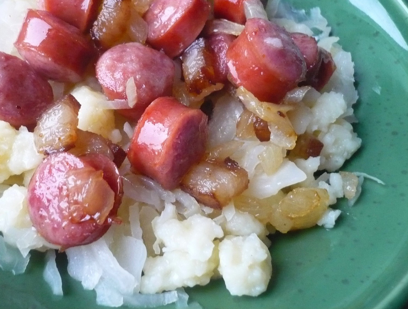 Domů - Recepty - Halušky s hlávkovým zelím a klobásou