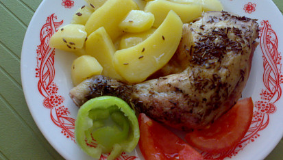 Cuketa na kari a česneku s nakládanou červenou paprikou