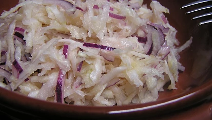 Krok 1: Celer okrájíme a umyjeme. Nastrouháme na hrubém struhadle.