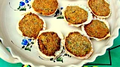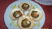 Krok 2: Lastury či ulity vymazat tukem, naplnit nádivkou a naskládat na plech. Do nádivky v každé lastuře udělat malou prohlubeň a vložit kousek másla. Péct cca 15-20 minut.