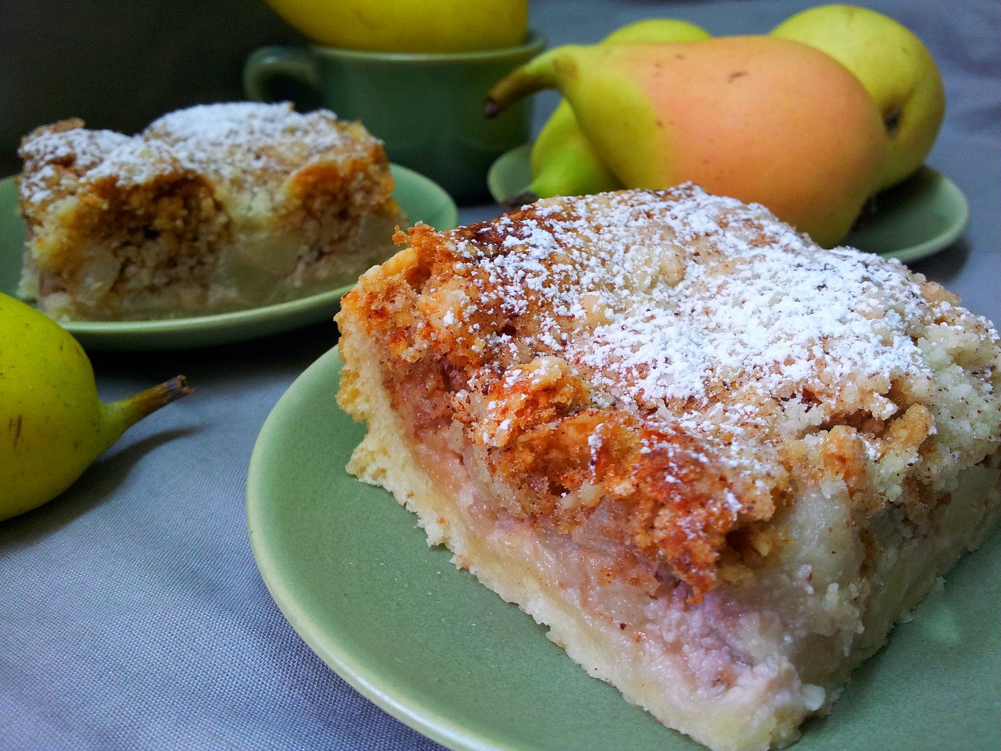 Kynuté koláče na plech s vrstvou ovoce a drobenkou zná jistě každý ze svého dětství, ještě od svých babiček. Připravte doma ke snídani či ke kávě koláč podle tohoto receptu. Hrušky s ořechy spolu příjemně ladí a drobenka se skořicí to jen podtrhne.