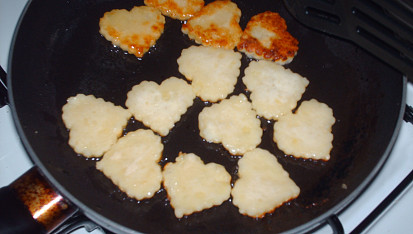 z obou stran na rozpáleném oleji do růžova. Krok 3: Ještě teplé namažeme tvarohem a dozdobíme džemem.