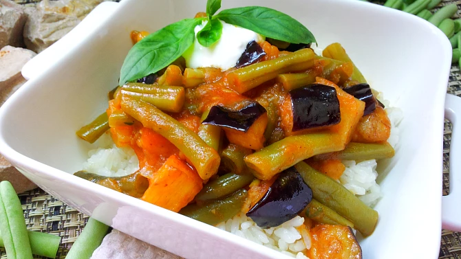 Fazolky s lilkem v rajčatové omáčce