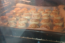 potřeno máslem a posypáno cukrovou směsí se skořicí