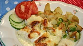 Krok 1: Prsa omyjeme, lehce posolime a nakrajime na tenke platky cesnek, ktery poklademe na maso tak, aby tim bylo maso zakryte.