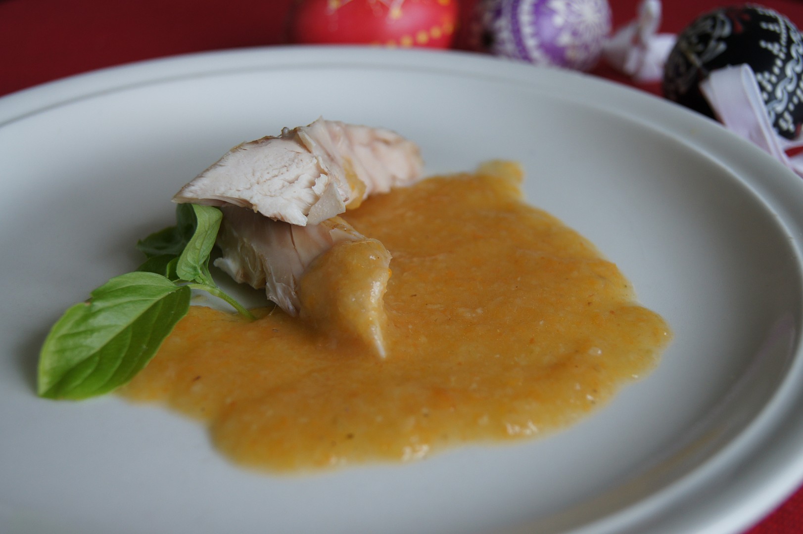 Krok 4: Při 120°C jsem králíka pomalila 2 hodiny 30 minut. Pak jsem králíka schovala do předehřáté mísy. Zeleninu jsem propasírovala a nakonec jsem pro zjemnění přidala kousek másla. Zahušťovat není třeba. Maminka podávala s bramborovým knedlíkem, já mám raději bramborovou kaši.
