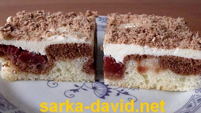 Krok 3: Navrch přijdou jahody (v sezoně využijeme čerstvé, mimo sezonu kompotované, odkapané) a dáme péct do předem vyhřáté trouby na 180°C. Necháme vychladit.