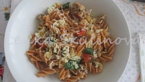 těstoviny se sušenými rajčaty a kuřecím masem,