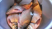 Krok 1: Ryby očistit, pokud možno vyfiletovat, nebo alespoň odstranit páteř. Do vyššího hrnce dát vařit osolenou vodu, každou půlku ryby napíchnout na vidličku, smočit na okamžik do vařící vody, vyjmout.