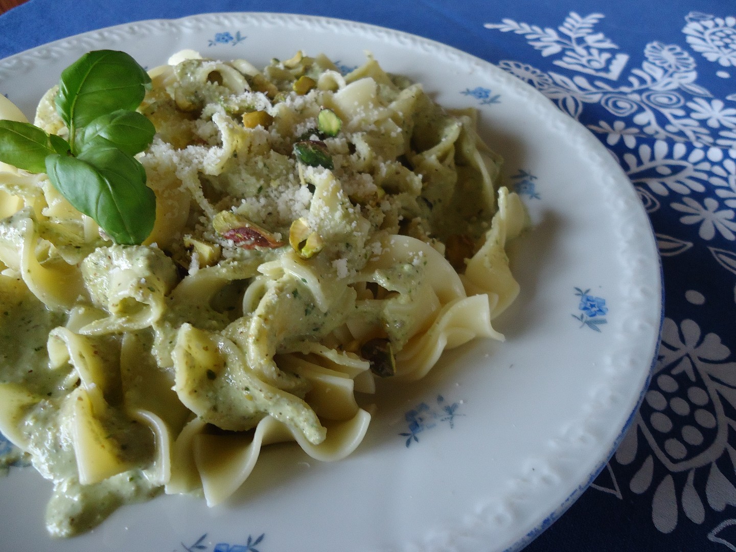 těstoviny s ořechy a smetanou,