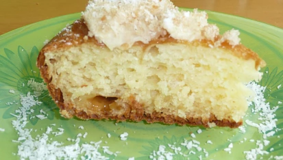 Moučník s pečeným pudinkem a krustou ze strouhanky a kokosu