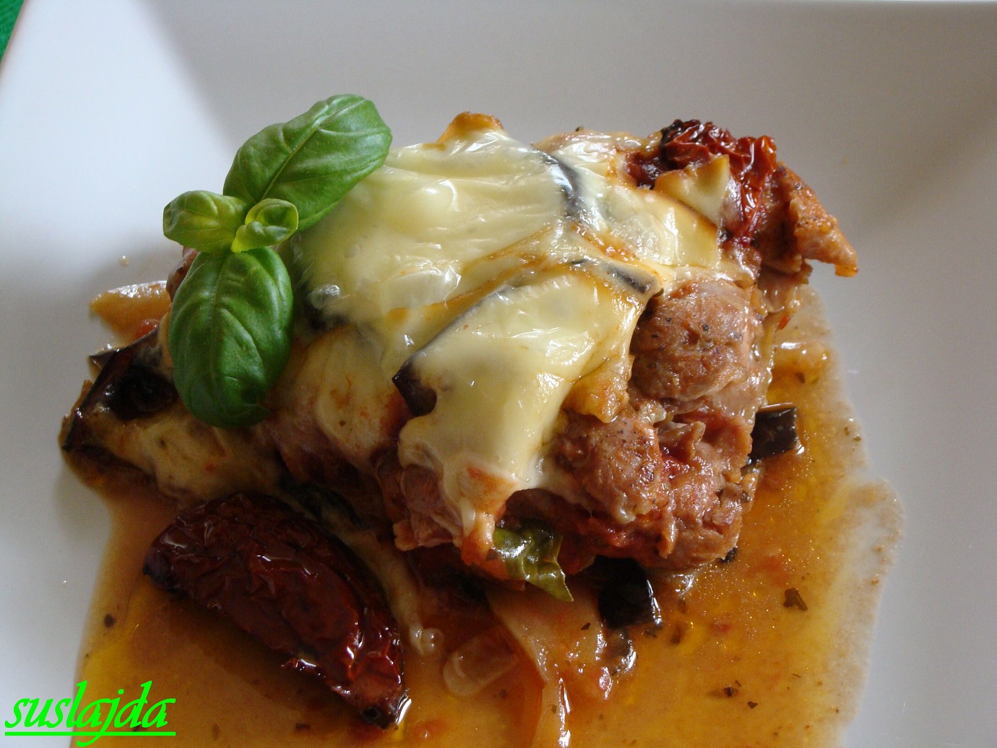 zapečené kuřecí maso s lilkem,