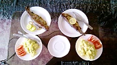 Krok 6: Příloha: do uvařených brambor dáme, nasekanou pažitku, tak 2 plátky másla a trochu mléka. To celé rozšťoucháme. Můžeme podávat se zeleninou, nakrájeným rajčetem, okurkou, paprikou podle toho na co je chuť.