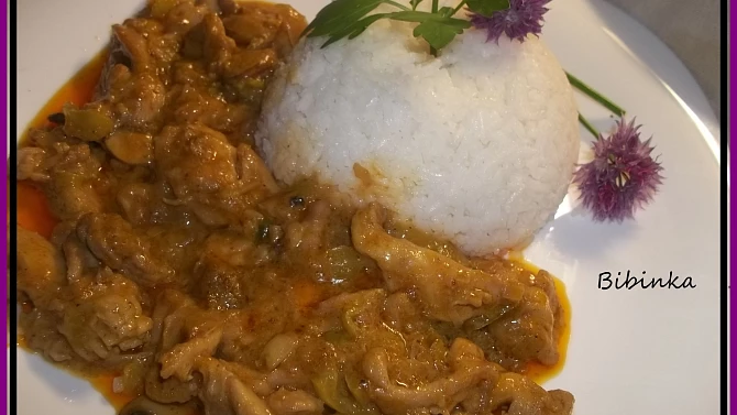 Podáváme nejlépe s rýží a kdo by si přál ještě ostřejší, může přidat chilli papričku, nebo víc koření. Je to sytá dobrota.