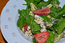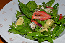 Špenátový salát s jahodami, avokádem a makovým dresinkem