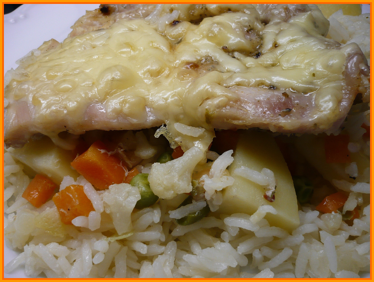 Kuřecí plátky na rýži a zelenině v římském hrnci