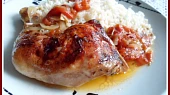 Kuře v jogurtové marinádě na pečených rajčatech a paprice