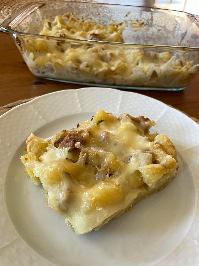 Zapečené noky s vepřovým masem v hořčičné omáčce