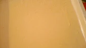 Krok 2: Světlé těsto rozdělíme na 2 díly, jeden upečeme na obráceném plechu a druhý díl rozválíme na hlubší plech a pěkně ho vtlačíme k okrajům a rohům, na něj pak nalijeme těsto tmavé. Upečeme v mírně vyhřáté troubě a necháme vychladnout na plechu.