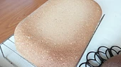 Krok 2: Korpus na tělo hrošíka udělán v kovové misce o průměru cca 23cm. Tu vystříkáme olejem na pečení. Nalijeme těsto a pečeme v troubě na 160°C asi 20 minut. Následně se vpichem špejle přesvědčíme o upečenosti. Případně ještě přidáme 5-10 minut dle potřeby a schopnosti trouby.