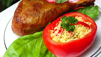 Krůtí stehno s rajčaty plněnými zeleninovým kuskusem
