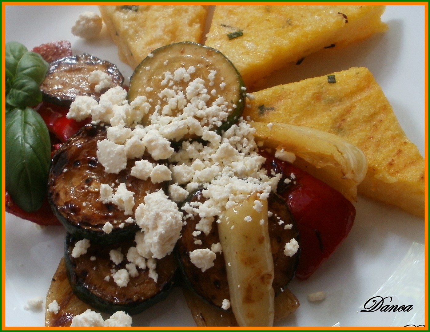 Polentové bylinkové trojhránky s grilovanou zeleninou
