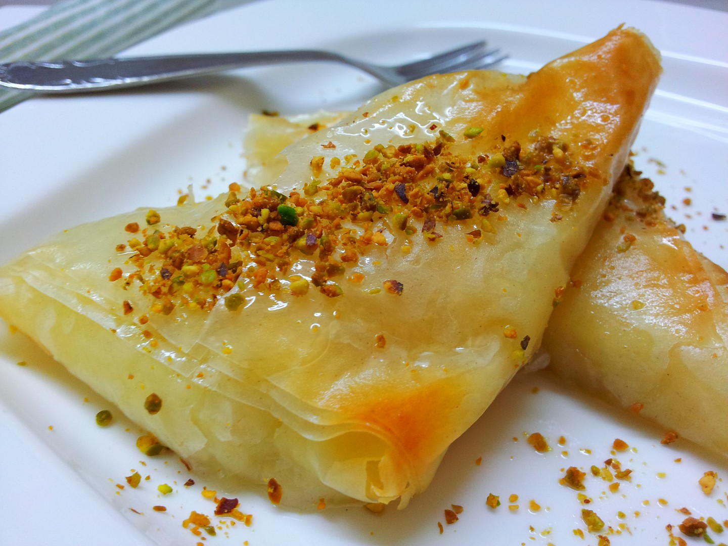 Jemné filo trojhránky s lahodným krémem uvnitř a lesklou vrstvou růžového sirupu na povrchu jsou exotickou pochoutkou. Křupavé těsto v kombinaci s nadýchanou náplní a sladkou polevou tvoří dokonalý dezert.