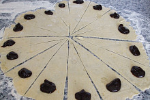 Rohlíčky plněné tvarohem a povidly kynuté za studena (v lednici)