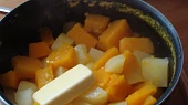 Krok 2: Dýni a brambory oloupeme a uvaříme v osolené vodě do měkka. Scedíme přidáme máslo, mléko a ušleháme hladkou kaši.