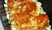 Davídkovy kuřecí paličky s žampiony, slaninou a pórkem