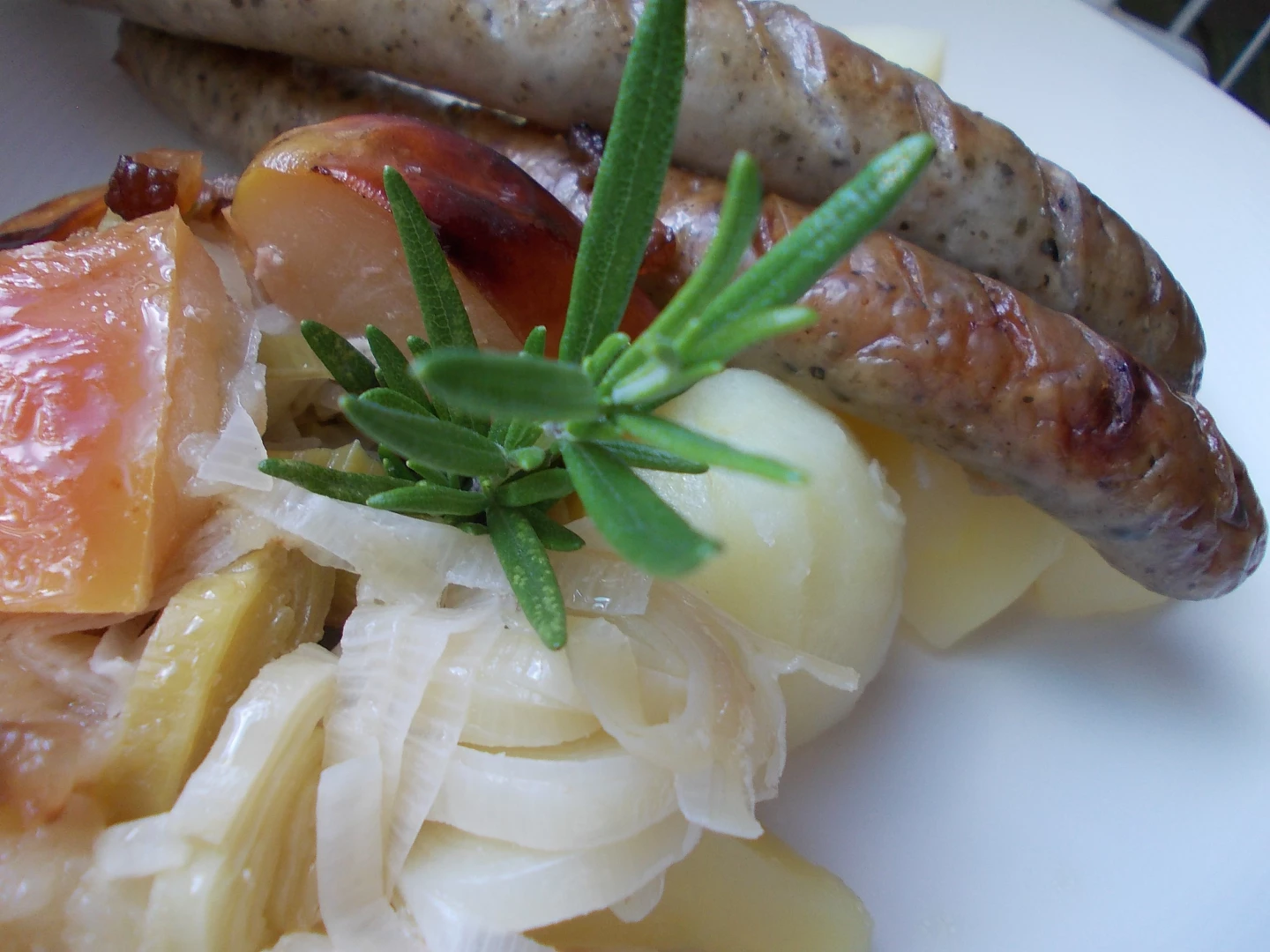 Pečená jablíčka s klobáskami a pórkem