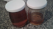 Krok 4: Připravte si nádobu, do které ghí scedíte a cedník. Položte dvě kuchyňské utěrky přes cedník. Položte cedník na nádobu, v mém případě na trychtýř. Pomalu tam přelijte tuk. Nechte vykapat. Přecezené ghí přelijte do nádobek ve kterých chcete ghí skladovat (já používám skleničky od jogurtů). Nechte vychladnout v pokojové teplotě. Můžete dát do lednice, kde ale ghee ztuhne a budete jej v některých případech muset rozehřát.