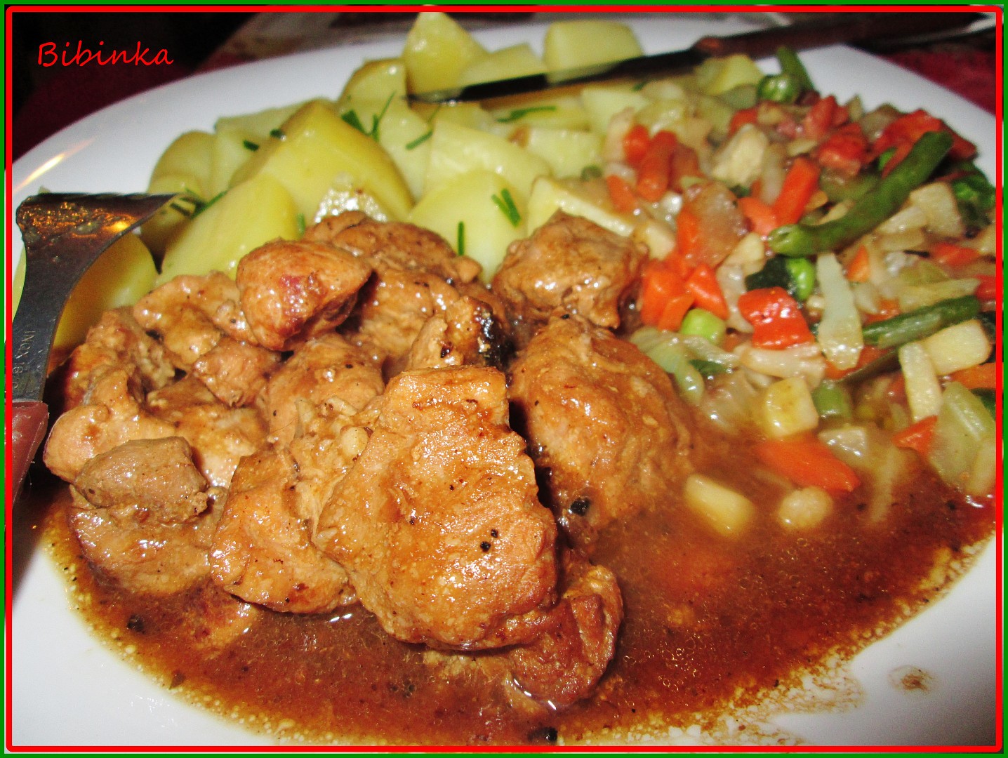 vepřový ořez se zeleninou,