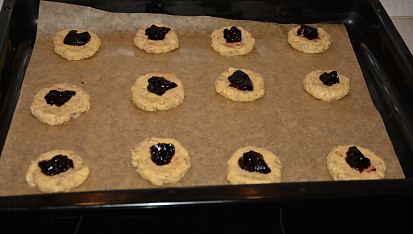 Krok 3: Do dolíků dáme marmeládu a můžeme péct.