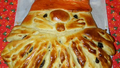 Pokud už vás omrzel klasický pletený tvar vánočky, vyzkoušejte jiný motiv - Santu Clause. Tvarování je sice trochu náročnější, ale těsto je tužší, takže by se vám s ním mělo opravdu dobře pracovat. Výsledkem bude roztomilý starší pán s typickým plnovousem.