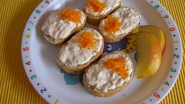 Chutná pomazánka z domácí lučiny, mrkve a česneku